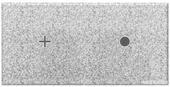 接下来闭上你的左眼,用右眼看左边的加号,这时候你会发现右边的圆点不见了,记得将注意力放在左边的加号上,不要有让右边消失的强迫意识,还能看见圆点的过来找我。